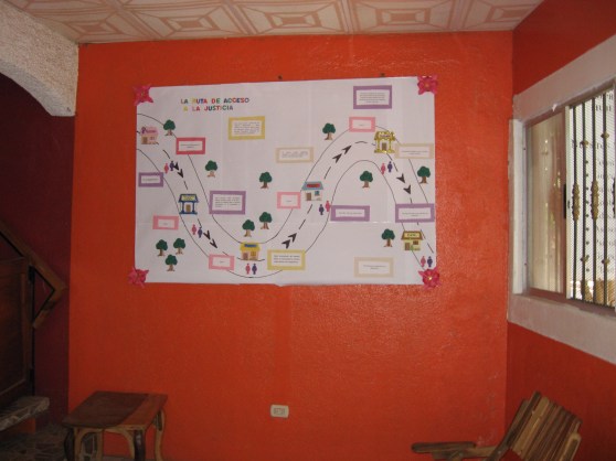 Poster in El Centro de Mujeres Acahual describing the “route of access to justice.”