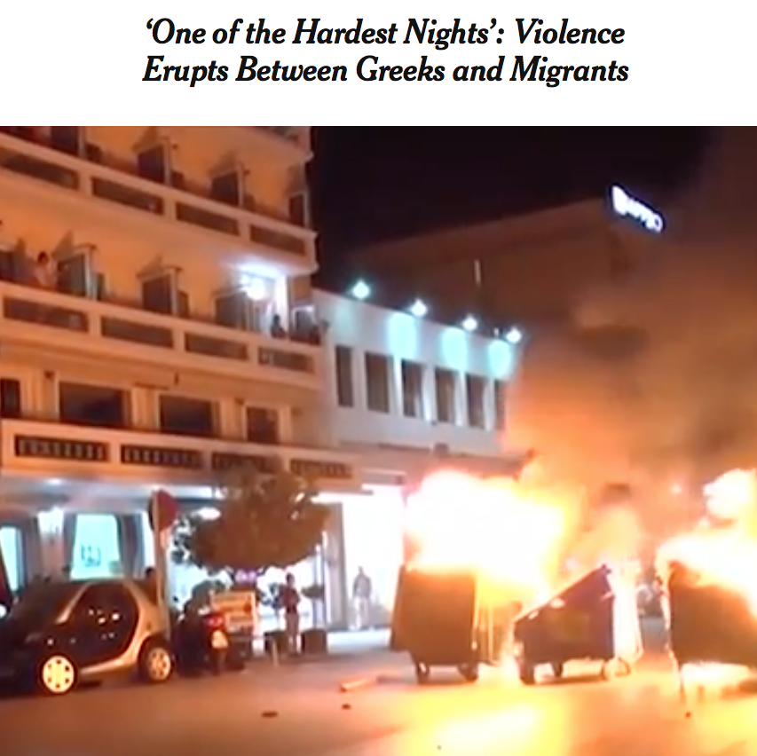 Screen Shot 2018-09-11 at 4.06.54 PM Published September 11, 2018 at 853 × 852 in Exploring Social Inequality & Human Rights in Greece During the Refugee Crisis ← Previous Next → A heading from the NY Times in April, 2018 outlining the turmoil between Greek citizens and refugee migrants