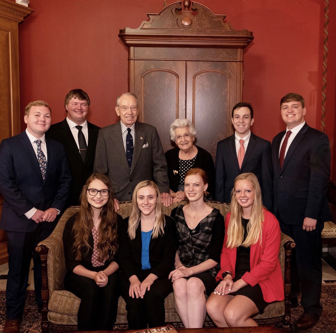 Senator Grassley, Mrs. Grassley, and the 2019 Summer Session II Interns (7/22/19)