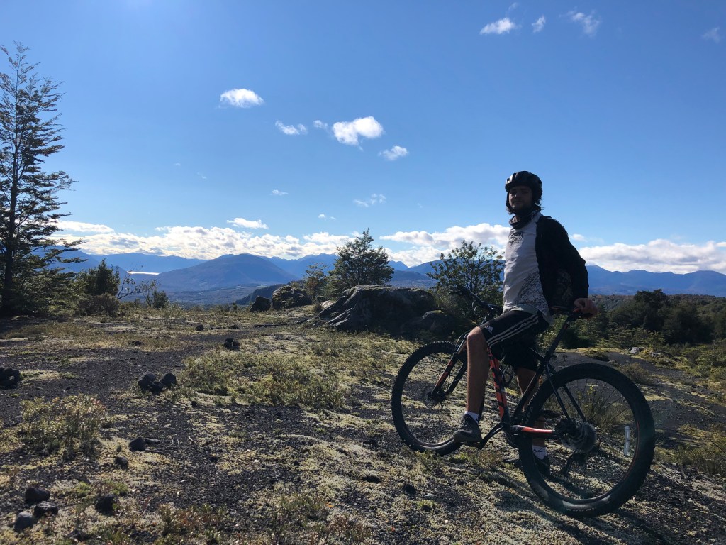 En la semana pasada, fui a Pucón con algunos amigos. Pasamos un fin de semana muy activo; mandamos bicicletas y hicimos rafting en el Rio Trancura. Por el día final, mis amigos Max, Gugi y yo mandamos bicicletas a un parque a la oeste de Pucón. Había senderos que los mandamos muy rápido, y empujé pasada mi limite. Me calle algunas veces y duele la mano-el sendero fue difícil porque era muchos pierdas y roca volcánica en polvo. En total mandamos mas de 60 kilometres y pasamos todo el día por nuestras bicicletas.