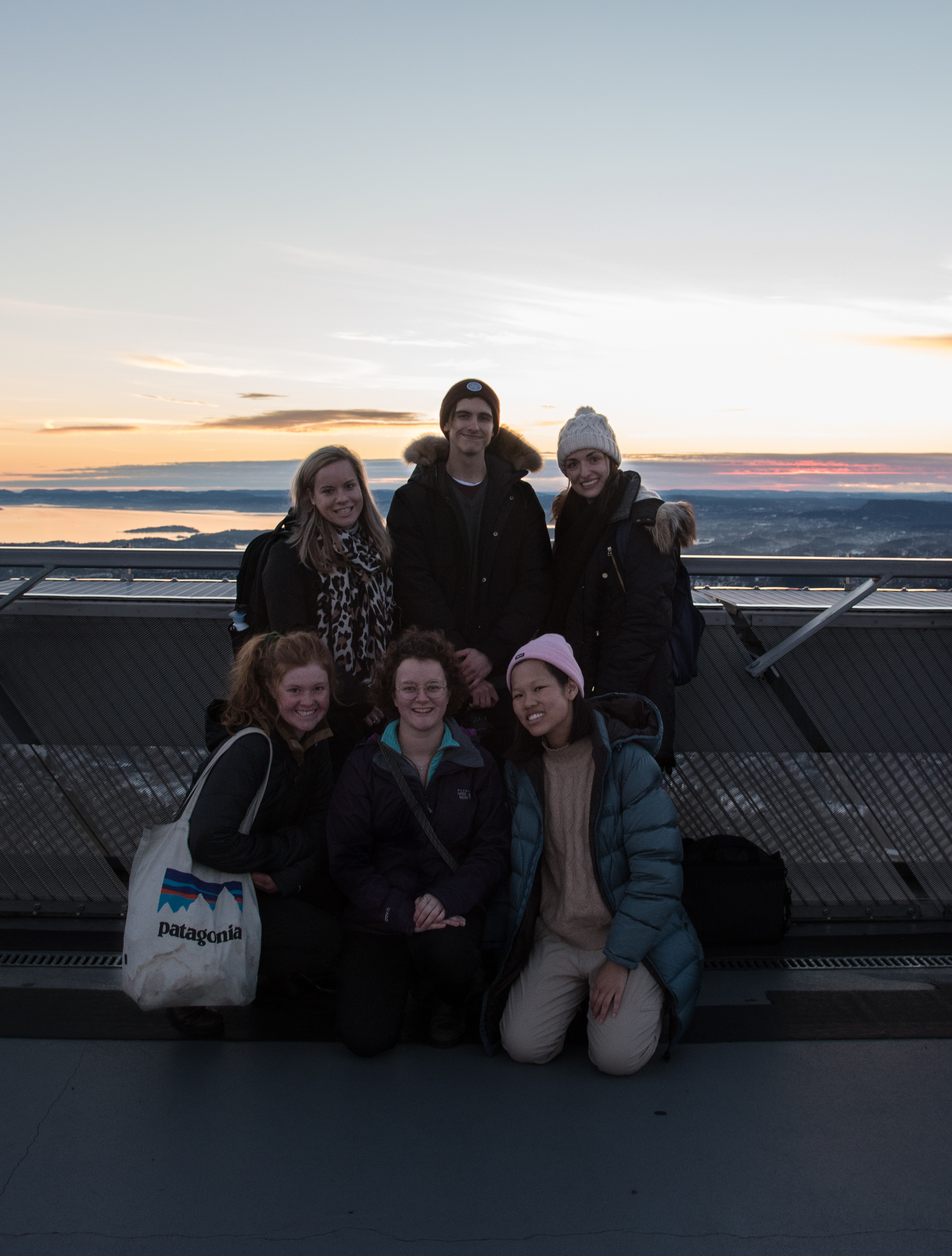 From left to right, Astrid (Dutch), Andre (Australian), Vanessa (Austrian), Izzy (Colorado), myself and Lauren (Australian) pose around 2 p.m. on top of Holmenkollen on one of my first days in Norway. Holmenkollen is a tall ski jump, used in the Olympics, that has a wonderful view of the city.