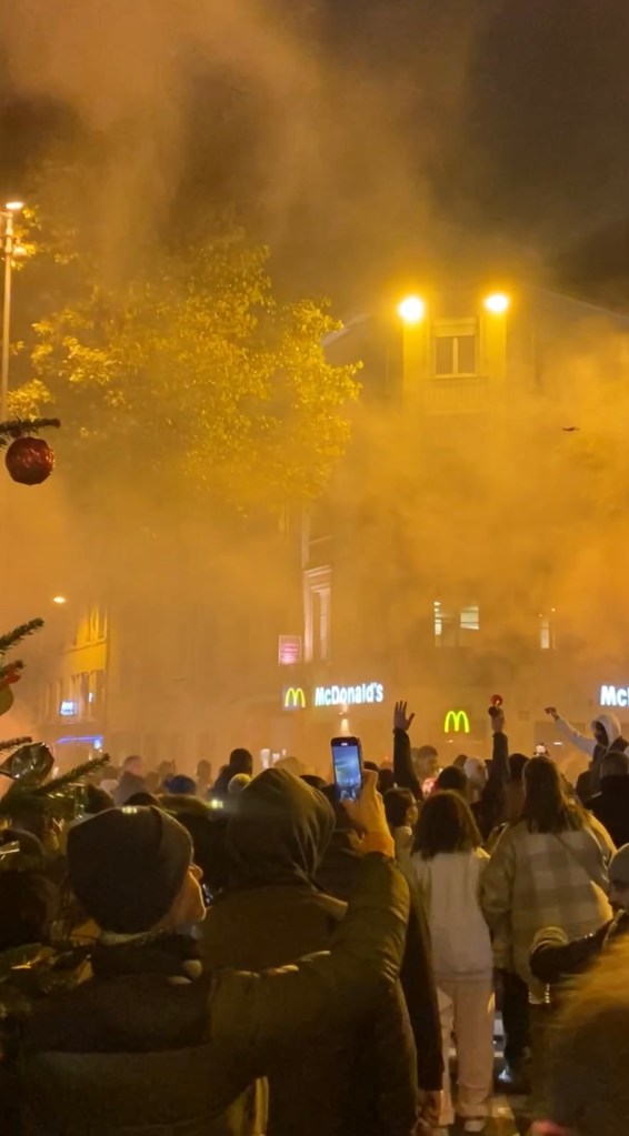 (Buzzing streets after Morocco made it to the semi-finals, widely celebrated in Lyon due to the prevalent Northern African population in France. Such a historic moment, so cool to witness!)