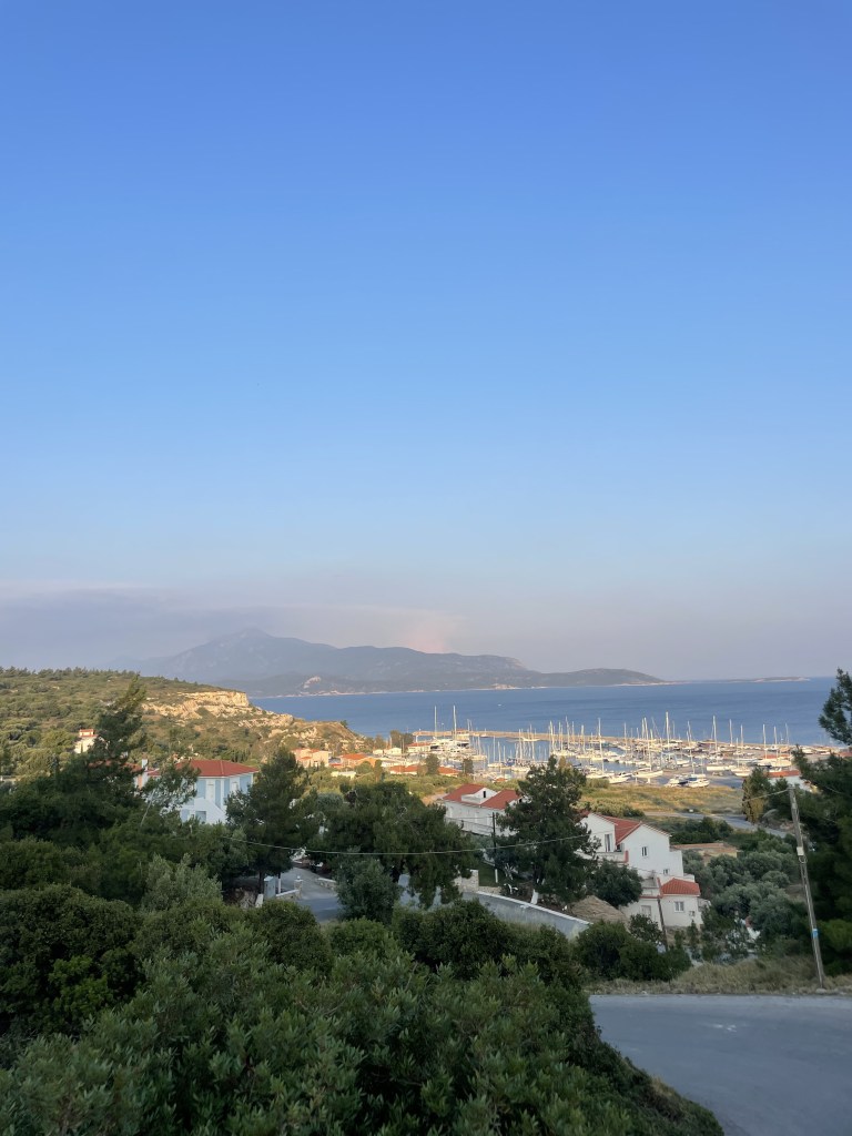 I have learned a lot about how the environment affects human populations, especially living in Greece during the longest heat wave ever recorded in the country’s history. Fires erupted in surrounding islands, burning many homes and threatening the lives of thousands. I was afraid my time here would be cut short, especially when a small fire popped up on Samos. Fortunately, they were able to put it out quickly and we didn’t have another after that! The shops on every island set up donation bins for families who lost homes in the fires, and interns would give what we could. Even after the fires and the very real threat of ocean plastic to humans and animals alike, so many people fail to practice greener alternatives which may mitigate these issues. I have taken so much from this amazing experience, and I feel fully transformed as a person having completed this internship.