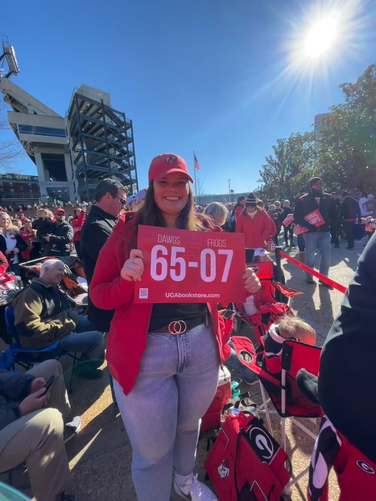One of the most influential reasons for choosing to study at UGA was their athletics programs along with their high-ranking college of business, combining two of my favorite things about UM and getting to experience them at a much larger university. On my first day of class in January, UGA was playing in the College Football National Championship in Los Angelos. That evening was spent celebrating both new friendships and getting to be a Georgia Bulldog winning back-to-back national championships and will be one of my favorite memories. During my program, I was able to deepen my interest as an intern for the UGA Athletics Marketing Department in the Fan Engagement department helping to implement and increase fan engagement during sporting events both with students and general fans. One of my biggest passions that allowed me to learn better practices is that I can implement what I’ve learned during my internship with Grizzly Athletics.