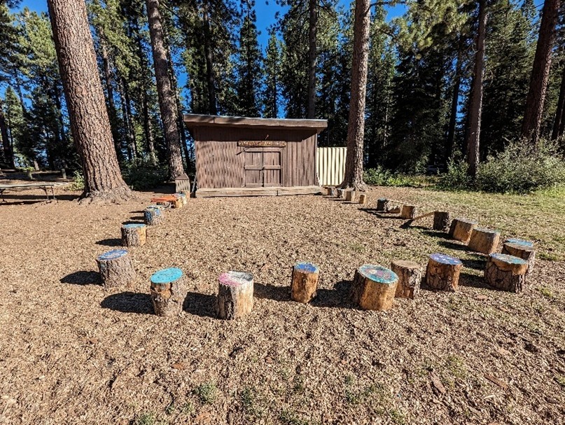 Camp Skylandia log circle where campers gathered.