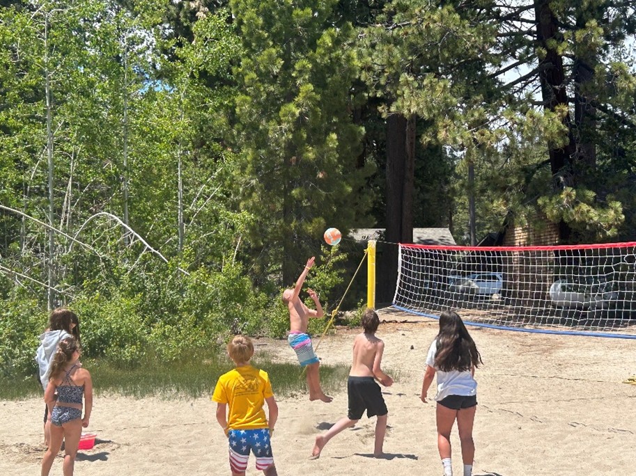 Meeks Bay Field Trip with campers playing volleyball.