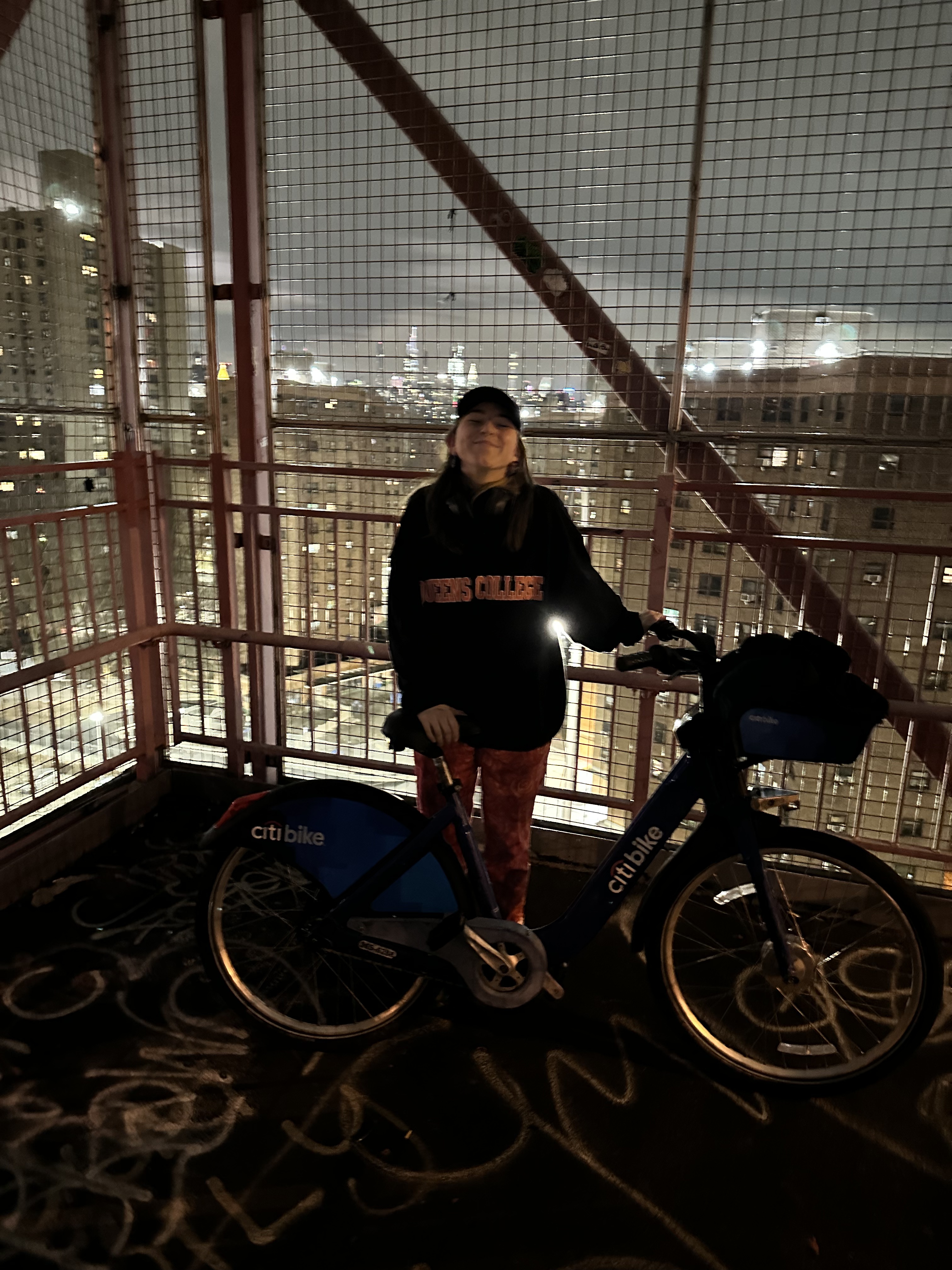 Me biking across the Williamsburg Bridge on my last night in New York.