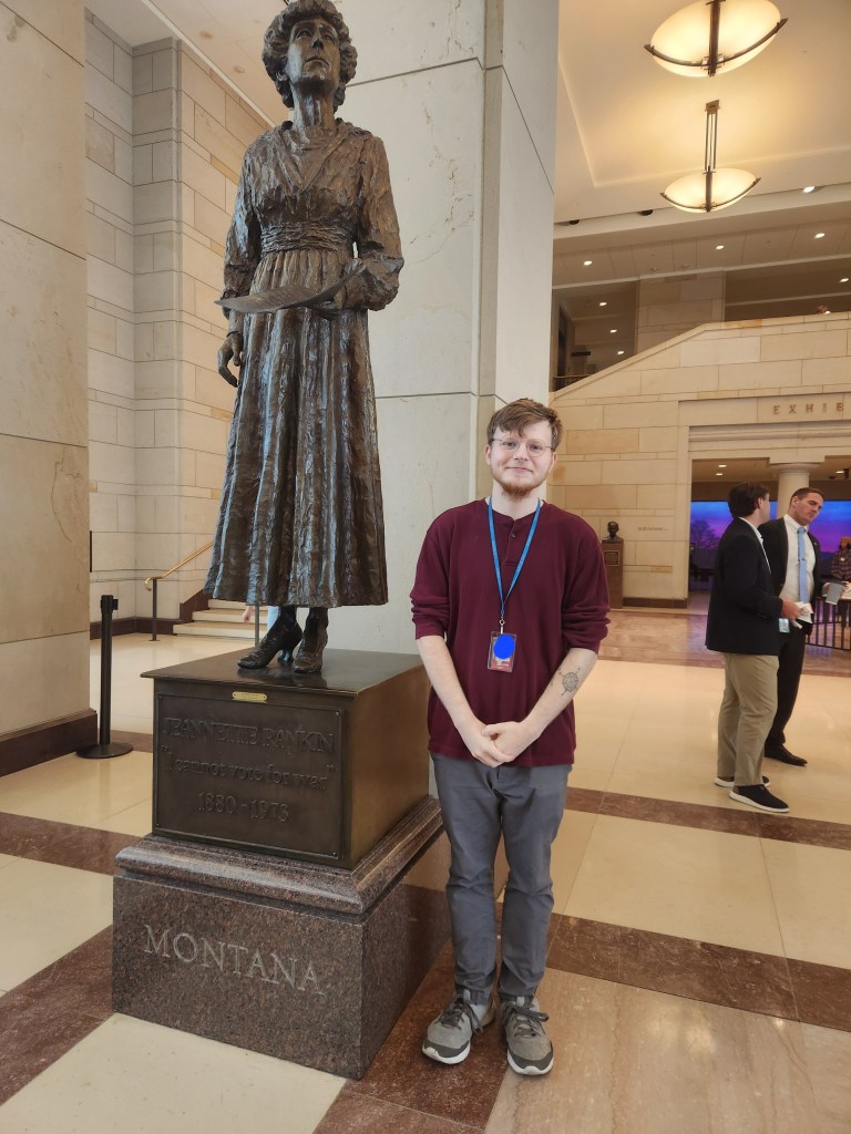 In this picture, I’m standing next to the first-ever Congresswoman in the nation, Montana’s own Jeannette Rankin. Each state sends two statues to be displayed in the Capitol, the other one from MT is of Charlie Russell.