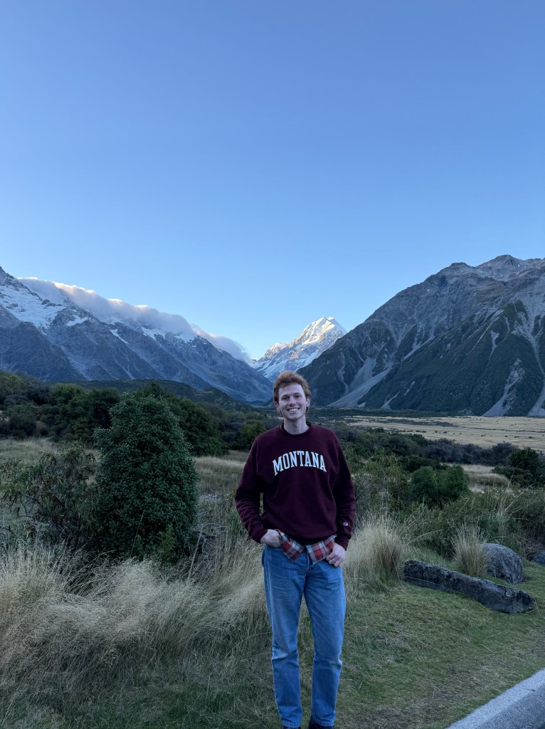 Kia Ora! My name is Chris Holstine, and for my Beyond the Classroom Experience I studied for a semester at Victoria University of Wellington in Wellington, Aotearoa (New Zealand). My GLI Global Theme is Resources and Sustainability. I took multiple classes related to Resources and Sustainability, but the one that I found most interesting was called Sustainable Destination Management. In this class, I learned about sustainable tourism development and how New Zealand is attempting to make tourism the most profitable industry in the country (previously dairy production). I was able to draw connections between New Zealand and Montana during class discussions about tourism development, as Montana faces similar environmental challenges to New Zealand. There are seldom wildfires in New Zealand, but the Eastern Canterbury Plains struggle through long drought seasons which makes farming difficult. Canterbury is also having to manage agricultural runoff into rivers as the drinking water of many rural communities is contaminated. I am grateful for the classes that I took at Victoria University of Wellington, because they all involved thoughtful discussions that helped me develop a global perspective on environmental management.